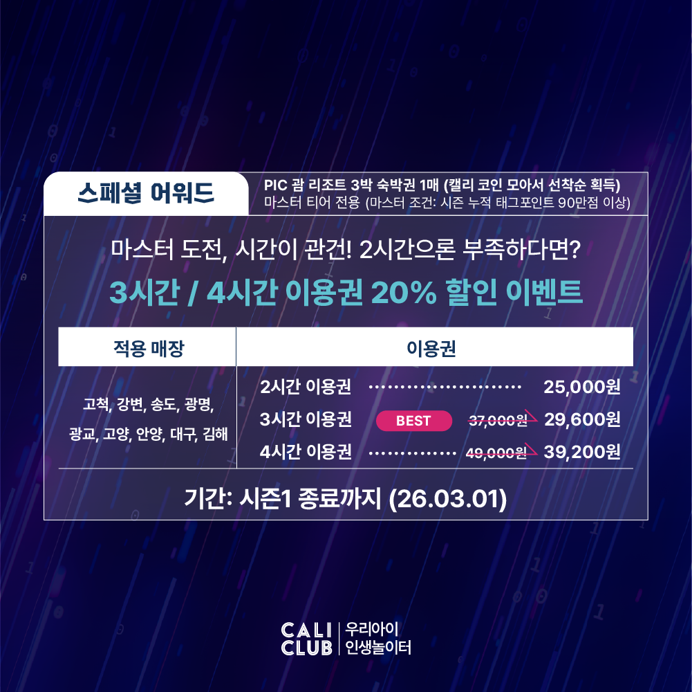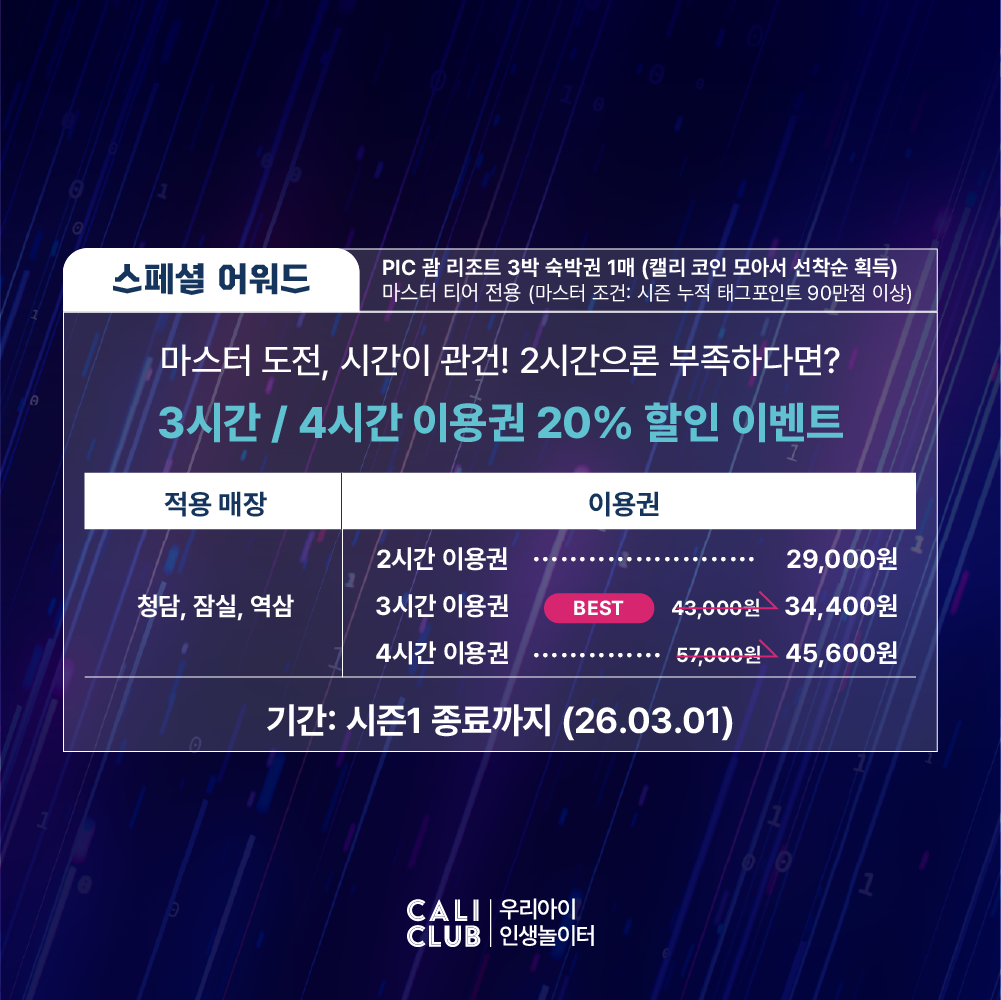 🔥 3시간 / 4시간 이용권 20% 할인 이벤트 진행 중