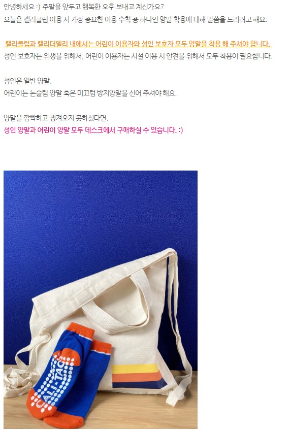 캘리클럽 내에서는 양말을 꼭! 착용해주세요