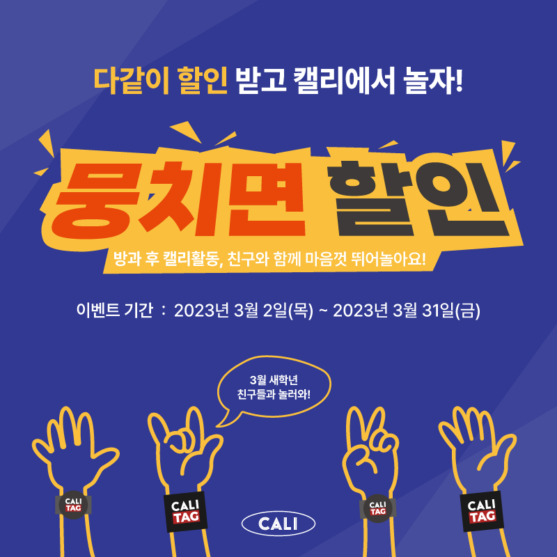 캘리 할인 받으시고 친구들이랑 더욱 더 친해져봐요!!