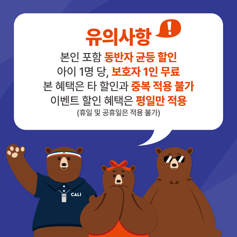 (ex. 아이 2명, 보호자 3명 입장 시 보호자 1명 유료 결제 필요)