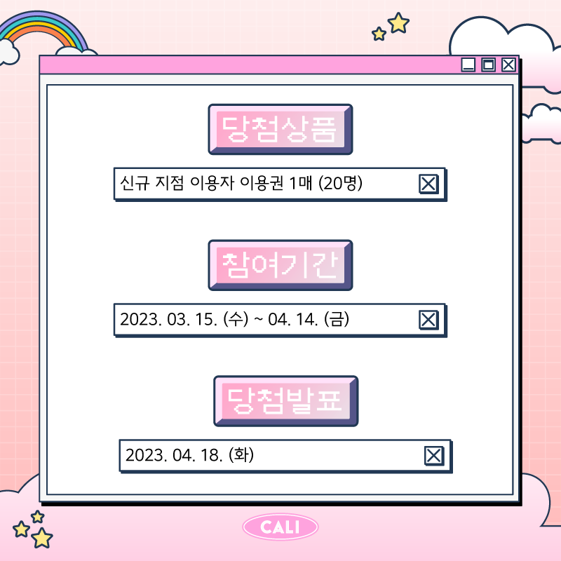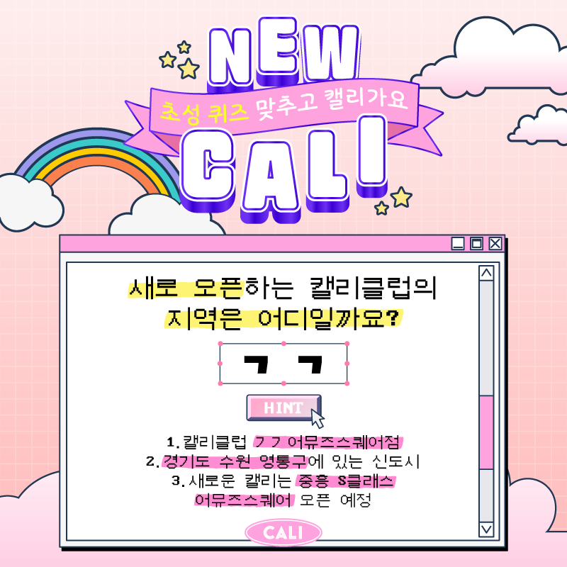 [신규 지점 오픈 이벤트] 퀴즈 맞추고 캘리클럽 무료이용권 받아요