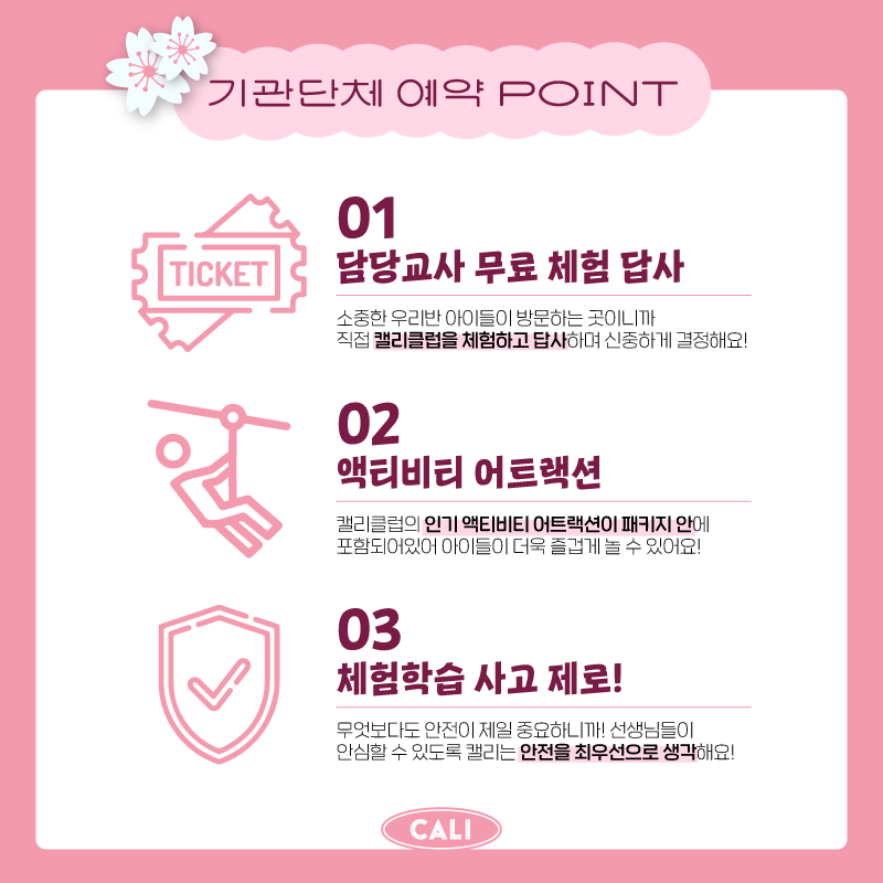 캘리클럽은 항상 아이들의 안전을 최우선으로 생각하고 움직인답니다!