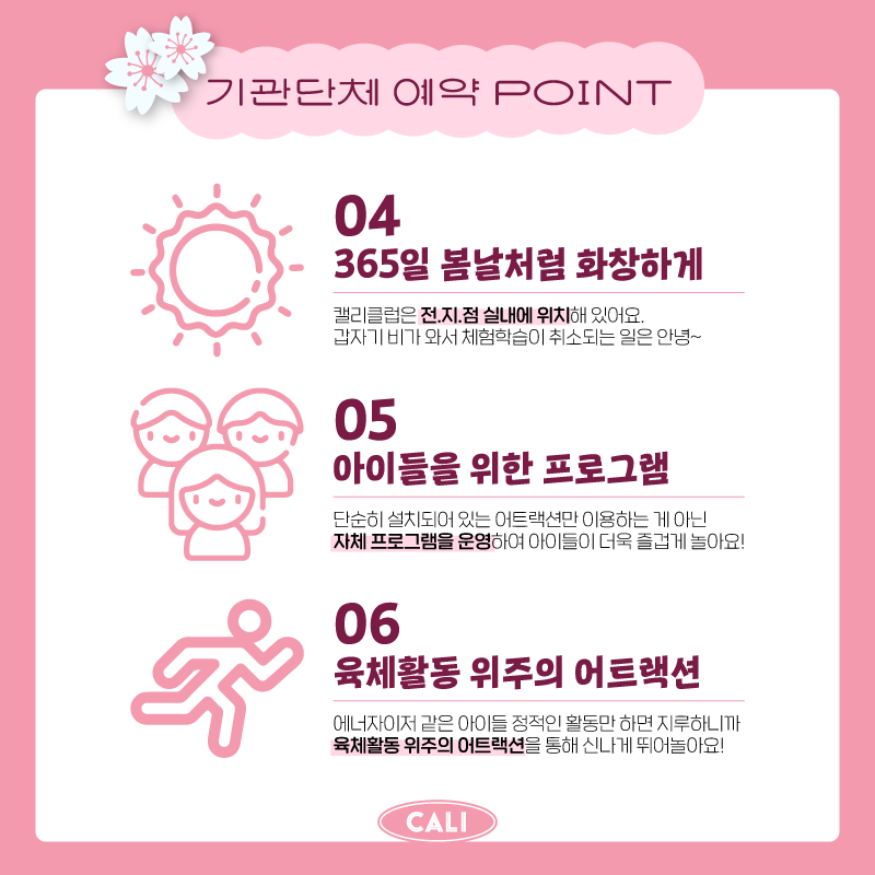 이제 캘리로 체험학습을 와야하는 이유를 알려드릴게요!