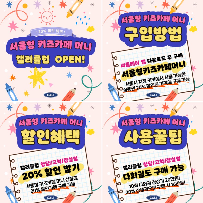 [서울 키즈카페 머니] 캘리클럽 이용권 💗20%💗 절약 가능‼️